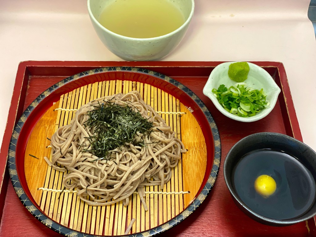 coming with grated yam, raw quail egg and soba yu “vegan and gluten free”